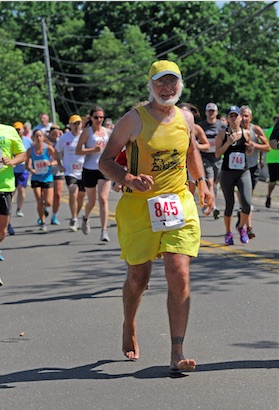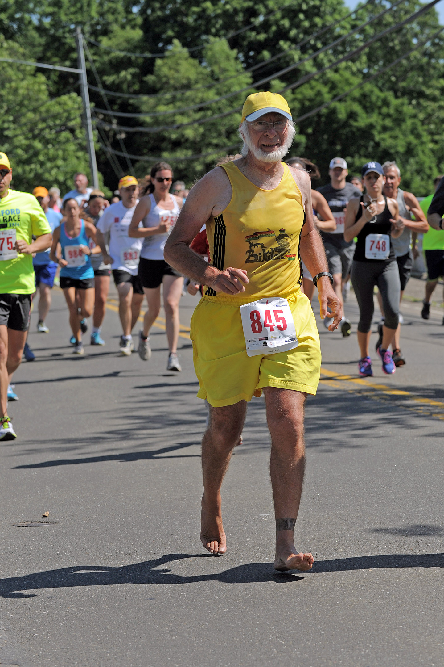 Then in June, at mile 3 of the Branford road race, my knee crashed and I couldn't even walk (the photo at the left was taken at mile 1). My running buddy, Larry Inge, was with me and he drove me home. For the first few months I treated it like tendonitis, but it didn't heal and finally in August I went to see a sports doctor in Paris who told me that I probably had osteoarthritis and might never run again, at least not without special orthotic shoes. I felt like I had died. Finally, I got an MRI and found it was less serious, a torn meniscus. After surgery in September I even ran the Christopher Martin race in December. Slower than usual, but still faster than anyone else my age.