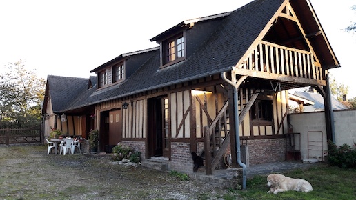 And in this photo you see our house that Sylvain built over the years as his family evolved, first Charlotte, then Justine, and finally Armand. Once the kids grew up and left home, Sylvain and Mary France bought and fixed up a house across the street and started renting out our house. In the photo you can see our pets that Kiki brought from Paris when she came in 2009 : Charlie the long-haired black cat (sitting on the staircase) and Marcel, the golden retriever (who died in 2018).