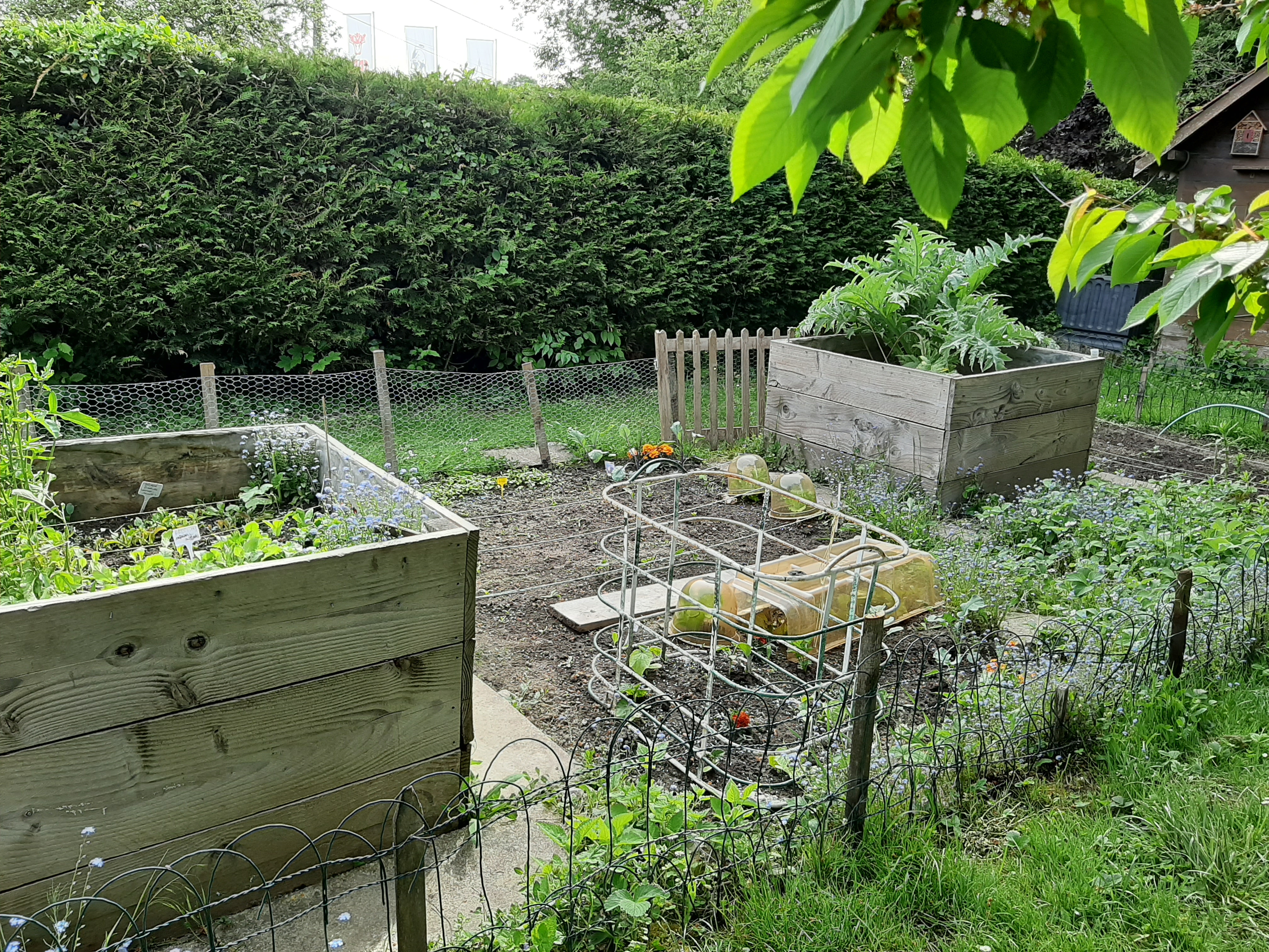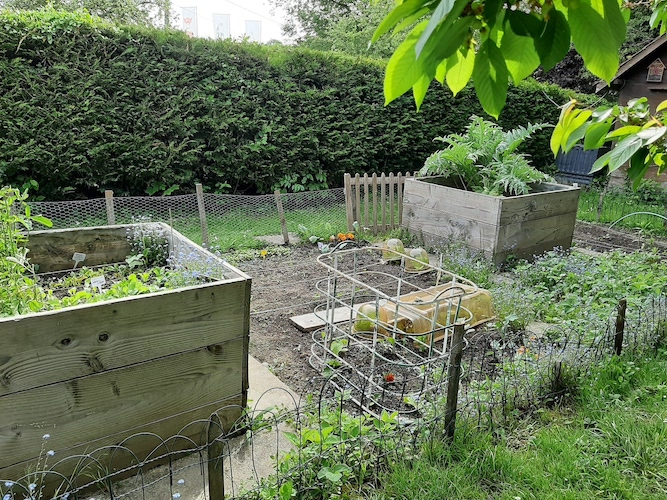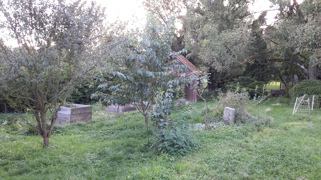 And here are three views of our meadow. The first is a bit wild - no goats grazing, while the second shows Camomille and Clothilde grazing and the third shows the garden. As for the garden, see the poem called "Bonne Aniversaire". On the left in the first are the raised parts of Kiki's garden and the mirabelle fruit tree that was so prolific in 2018, but frozen out in 2019. In the background, on the other side of our little river (le douet) is the European Farm for Children