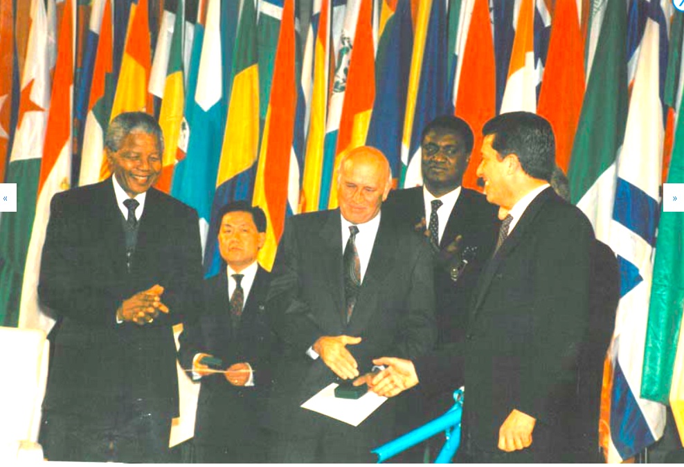 ![]() Alioune Traor looks on from behind UNESCO Director-General Federico Mayor as Mayor awards the Houghouet-Boigny Peace Prize to Nelson Mandela and Frederick de Klerk. (Click on the image to enlarge) I went to meet with Traore on my arrival at UNESCO and found a tall, stately person who fit the image of an African chief. Unfortunately, at that time my French was rudimentary and he did not speak English, so our conversations were llimited. He congratulated me for working for Federico Mayor, whom he greatly esteemed. And the one thing I recall from our conversation was his description of the culture of UNESCO. It is a hierarchical institution, lacking only the actual salute when meeting or passing a superior officer. Over the years, my experience confirmed his description. I was not tempted to know more about him at that time as I knew that his chief advisor for the Prize was none other then Mr Culture of War, Henry Kissinger. I should not have been surprised since Kissingerr was very close the the actual Houghouet-Boigny when the latter was the harsh dictator of Cote d'Ivoire. But irony of ironies, Houghouet-Boigny was the person who initiated the Yamoussoukro conference that first proposed the culture of peace to UNESCO, even though he preferred to attend the 4th of July ceremonies at the American Embassy rather than show up at the conference.