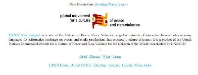 At first it seemed to be working. After visiting me and Di in Paris, Takehiko Ito mounted a site in Japanese which worked for many years. Di established a beautiful site in Australia which she ran for several years and included articles from contacts in China. In Moscow, Katerina Saliagina continued to develop a sub-site of the UNESCO site there as a CPNN affiliate and she put several articles on line which I translated an put on the English-language site which I was running. Over the years, many others (in Canada, England, France, Brazil, Cyprus, etc.) promised to set up other CPNN sites, but it proved to be too difficult for them, and gradually I realized that the time had not yet come for a global CPNN. So I concentrated on the development of the English-language site. I ran many workshops around New England that generated articles and trained moderators. Several were at Wesleyan University in conjunction with a course that I ran in 2002 on the culture of peace. Some of the students in that course continued to work with CPNN, contributing their own articles and moderating those of others. These included Joe Yannielli, Ben Oppenheim, Charley McNally and Saori Imaizumi (who later did some work on CPNN-Japan with Takehiko). Other workshops were conducted at events in Hartford (with Mary Lee Morrison and Helen Raisz), at the University of Connecticut in Storrs (with Adam Kaloides and others) and at the high school in my hometown of Branford. My archives include the rather elaborate documents from several of these workshops. I tried various ways to involve more people. I set up a discussionboard in association with the site so that people could discuss their articles. I even establishing a bulletin board where organizations could post upcoming events. But over time each of these efforts failed to "take off" and gradually the site received fewer and fewer contributions. There were many visitors, but they came for the most part through search engines, read one page and then went on with their surfing. At the end of 2002 I tried another tack by expanding the site to all of the USA and sending out a monthly bulletin to a large mailing list that I had culled from the news releases of peace organizations such as United for Peace and Justice. This, too produced a momentary increase in articles, but not for long.