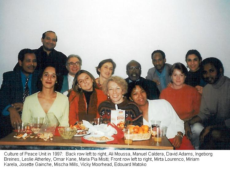 At the front of the room, where the Director-General would normally "hold court", flanked by his top cabinet, sat the Culture of Peace Director Leslie Atherley [chair 3] and a team of three professional mediators [chairs 4-DG-5] from the Centre de Mediation, headed by my good friend Jacqueline Morineau. Jacqueline thought so highly of me and the culture of pece that she had volunteered their services when she heard about the conflict in the Culture of Peace Programme, Ranged in a semi-circle facing the mediators were all of the members of the culture of peace unit. I was on one side, alone, at about [12}. On the other side, ranging from [17-24] were the Leslie's secretary Jeanine Harter and staff members Miriam Karela, Edouard Matoko, Ingeborg Breines and Mirta Lourenco, Matoko's secretary Vicki Moorhead and my secretary Saida Doumba. I don't recall if Zeynep Varoglu or Manuel Caldera were there. For two and a half hours, as the sun set and the room grew dark because we had no lighting, Jeanine and Miriam led the attack against me, accusing me of destroying the culture of peace program in all manner of ways. And for two and a half hours, the mediators mirrored the attacks back to the attackers with phrases such as "You say that David types his own memos and that undermines your authority as the unit secretary." and "You say that David has gone behind Leslie's back and spoken with the Director-General." etc., etc. And for two hours, I remained silent, listening to the frustrations of UNESCO staff members who had believed in the culture of peace program and now blamed me for its failures. Much of the attacks were personal, as they had grown to dislike me as the American who had originally developed the program, but had increasingly recognized that it was failing. And much of the frustration came simply from the programme's failure. Not a single person came to my defense, directly or indirectly. Leslie, manipulated by Jeanine and Miriam, kept his silence. Ingeborg, hoping to benefit by taking over the program on Leslie's retirement, kept silent. Edouard, who previously had refused to come to Saida's defense when she was attacked by the others, did not come to my defense either. He, too, was ambitious. And poor Saida, who had been physically attacked by the others for refusing to help them sabotage my work, was in no position to speak. In truth, the culture of peace programme - and in particular its national programmes - had been destroyed by the rich member states who refused to fund it, even more than the bureaucracy of UNESCO which could not make it work. A year and a half before in December 1996, I had made an analysis of the failure of the programme which I entitled "Lessons drawn from failures of the Culture of Peace Programme 1993-1995", but I had shown the analysis to nobody. There was nobody to listen. Not even the Director-General wanted to hear the bad news, and certainly my colleagues did not. It was a lonely time. I was ready to quit. But instead I conceived of the Culture of Peace News Network, proposed it to the Director-General, and received responsibility for the International Year for the Culture of Peace. Once I left the Culture of Peace Programme, its disintegration accelerated, and by the time of the International Year for the Culture of Peace, it had been disbanded. Looking back on that theatrical evening, I see how the great forces of history ultimately get played out on the stage of personalities and scenes, where often we fail to understand their significance.