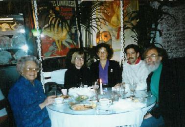 Marvel's life is described in the Streitmatter book, and even more extensively in a 160-page oral history by Kathleen Currie, of which I have a copy. The Currie history was commissioned by the Washington Press Club Foundation as part of its oral history project, Women in Journalism. It is now available on the internet. Marvel had come from Minneapolis to Harlem in 1926 as the assistant to W.E.B. DuBois, the great African-American sociologist, social activist (founder of the NAACP), and later, communist party member. She had been engaged while in Minnesota to Roy Wilkins, later the head of the NAACP, but she broke off the engagement to marry the champion quarter-miler of the world at that time, Cecil Cooke, a Jamaican. Wilkins later married her sister instead. Traveling to and from the many meetings of the National Board of the Friendship Council, and later when I would make the pilgrimage to Harlem, as a side trip on my way to and from UNESCO in Paris, Marvel would recall the rich network of friends that she had in the Harlem rennaissance, partly because her house was a social center, partly through the many interviews she conducted as a journalist, and partly because of her activism with the Communist Party, of which she was still a member (although ignored by the Party hierarchy). Marvel still lived at 409 Edgecombe Avenue, the house built by Babe Ruth so he could see across the river to Yankee Stadium, and which had housed at various times not only DuBois, but also Walter White and Roy Wilkins, past presidents of the NAACP, Thurgood Marshall of the Supreme court and William Patterson of the Communist Party, all of whom had been her friends at the time. Paul Robeson, with whom Marvel was very close, was a frequent visitor. Working as a reporter for the Amsterdam News in the 20's and 30's she got to know a Who's Who of American culture: in addition to those mentioned above, there was Lloyd Brown and Vita Barsky, Nora Hall, Zora Hurston, James and Esther Jackson, Judge Bruce Wright, Mary McCleod Bethune, singers Marian Anderson, Ella Fitzgerald, Lena Horne and Leontyne Price, writers Claude McKay, James Baldwin, James Weldon Johnson, Countee Cullen, Langston Hughes, George Murphy and Richard Wright, musician Dizzy Gillespie, dancer Catherine Dunham, painters Romare Beardon, Jake Lawrence and Elizabeth Catlett (paintings by Elizabeth hung in Marvel's apartment), actors Fredi Washington, James Earl Jones, Ossie Davis and John Randolph, athletes Jackie Robinson and Joe Louis, congressmen Benjamin Davis and Adam Clayton Powell, and Communist activist Angela Davis, for whom Marvel served as the head of her Defense Committee. Here is a photo of Marvel with me and Lindsay and our friends Joan and Barry Cohen, taken at a restaurant in Manhattan. Barry, at that time, was the editor of the Communist Party newspaper, the Peoples Daily World. Later, at the Party convention in 1991, when he was part of the dissident group, he asked me if I could help mediate, but it was too late and the Party was split down the middle, Barry being one of those who left. In 1987 Marvel and I were asked by the Communist Party and the National Council of American-Soviet Friendship to find a new, high-level Chairman for the Council. First, Alan Thomson and I approached Ossie Davis and Ruby Dee, who received us graciously at their beautiful home in Mount Vernon, but who told us that they were devoting all their political efforts to ending apartheid in South Africa. Then, Marvel and I approached the famous actor John Randolph, whom Marvel had known over the years with his wife Sarah Cunningham. John was lonely as Sarah had died not long before and he agreed to come up to 409 Edgecombe where Marvel and I tried to recruit him as the new Chairman. To our great delight, he agreed, and we would see him often over the next few years at meetings of the Council's Executive Board, to which he gave great service. Below is a photo I took of him in a Broadway restaurant where is is posing in front of a portrait.