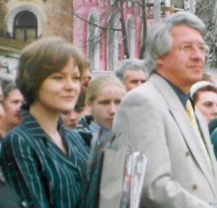 Then came the beautiful Ekaterina Saliagina. She had been hired in the Moscow office by my friend Wolfgang Reuther (with whom she is shown in the photo), and I engaged her to develop CPNN-Russia. She came to Paris and I took her for a boat ride on the Seine and walked her home holding hands and singing Moscow Nights. When I went to Moscow, we worked together in CPNN trainings (there is a nice portrait of me that one of participants made and which hangs on my wall here at home). One night I took her out to an intimate dinner and sang lots and walked her home. But, being an orphan without family, she was looking for a man to marry so I was not the one. She went on the mission with me and Wolfgang to Tatarstan where I have this photo as well as one in my history of the culture of peace. Eventually she found a man to marry and bring to Paris, the Russian staff member Sergei Lazerev from Social Sciences with whom I had not been able to work despite Mayor's orders to him. Oh well! Last I know they were posted to Alma Ata, but that was already years ago.