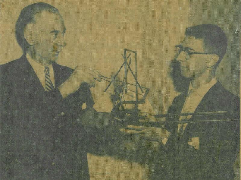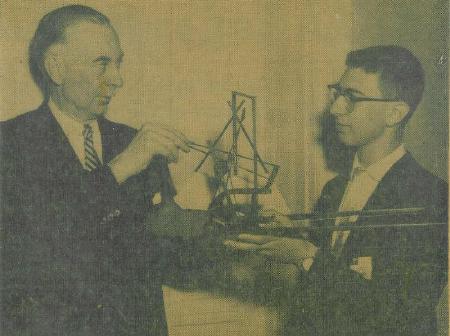 I graduated from high school in the "year of the Sputnik". The United States reacted to the Russian satellite by demanding my generation to become scientists in order to "beat the Russians." Because my test scores on the college entrance exams were among the highest in the nation, I was able to win various contests and scholarships. Most important, I was one of the finalists in the National Science Talent Search (STS). From a wire service release in 1957. NEOSHO BOY IN VIST - Following in illustrious footsteps, David Adams, 17, of Neosho, Mo., pays a visit to the Smithsonian Institute, Washington, D.C., where the institute's secretary, Dr. Leonard Carmicael, shows him a model of the reaper patented in 1834 by one of David's ancestors, Cyrus Hall McCormick. The son of Robert McCormick Adams, David is one of the nation's 40 top teen-age scientists attending the tenth annual Science Talent Institute and competing for Westinghouse Science scholarships. A promising young paleontologist, he submitted several specimens from his fossil collection for consideration as additions to the Smithsonian's collection. * * * I had already one a local science fair in Pittsburg, Kansas, with a study and display on protozoa a few years before. For STS, I did "A Story from a Rock" with hundreds of fossils taken from a single rock on the hillside behind our house. Between my high test scores and the excellent project, I was one of the 40 finalists who went to Washington in the spring of 1957. And the high point was falling in love with another finalist, Vee Schlatter, from a small town in Northwest Ohio. We shared the great excitement of the days of the finalists in Washington, and of first love. The first of my sonnets was written for her.
