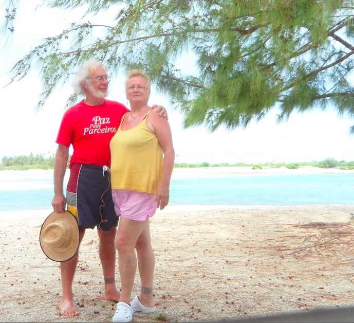Our most exotic trip was for one month to French Polynesia in the spring of 2012, visiting the islands of Moorea, Mahini and Tikehau. We had a great time fishing or swimming with the tropical fish in the lagoons. The dangerous sharks didn't come into the lagoon from the ocean side, although we had smaller sharks that ate our leftovers thrown from our tables by the water. At one point along with the three women who ran the pension we went out where we could swim with the giant manta ray. It was so beautiful that Kiki had one tattooed on the back of her shoulder on our return to the main island of Papeete. One day we took the kayaks to a small deserted island and played Robinson Crusoe, eating coconuts which we opened with oyster shell knives. Another time we were invited by the woman who did the housecleaning at the pension to a barbecue at her place where she and her husband raised pearl oysters, and she gave Kiki some of them (iridescent blue-black). This trip closed the circle for us, as it was around 1996 that Kiki went by herself to Tahiti with only a backpack, we called by phone at night where her telephone booth was besieged with crabs, and I surprised her by meeting her at the airport when she returned to France.