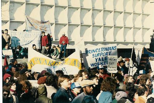 My next connection to the Yale Unions was through Lindsay who took a job at Yale just before Local 34 went on strike in 1984, and who became very active in the strike. I took on two roles, one as an organizer of support from faculty members at other universities in New England, and the other as a journalist, covering the strike for the Peoples Weekly World, the national Communist newspaper. We have several scrapbooks full of photos and mementos from the strike which ultimately won a good contract.