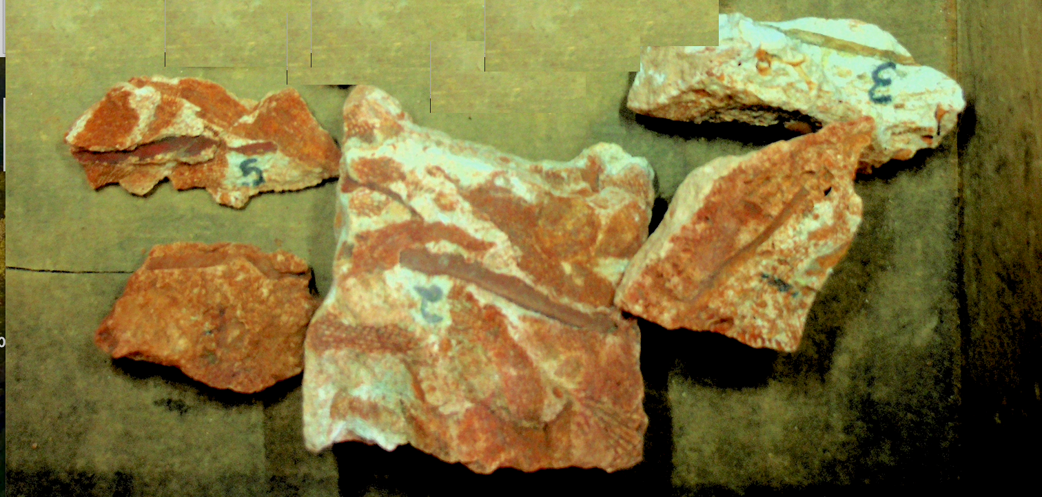 Algae photo. Four fossil fucoids, no precise identification.