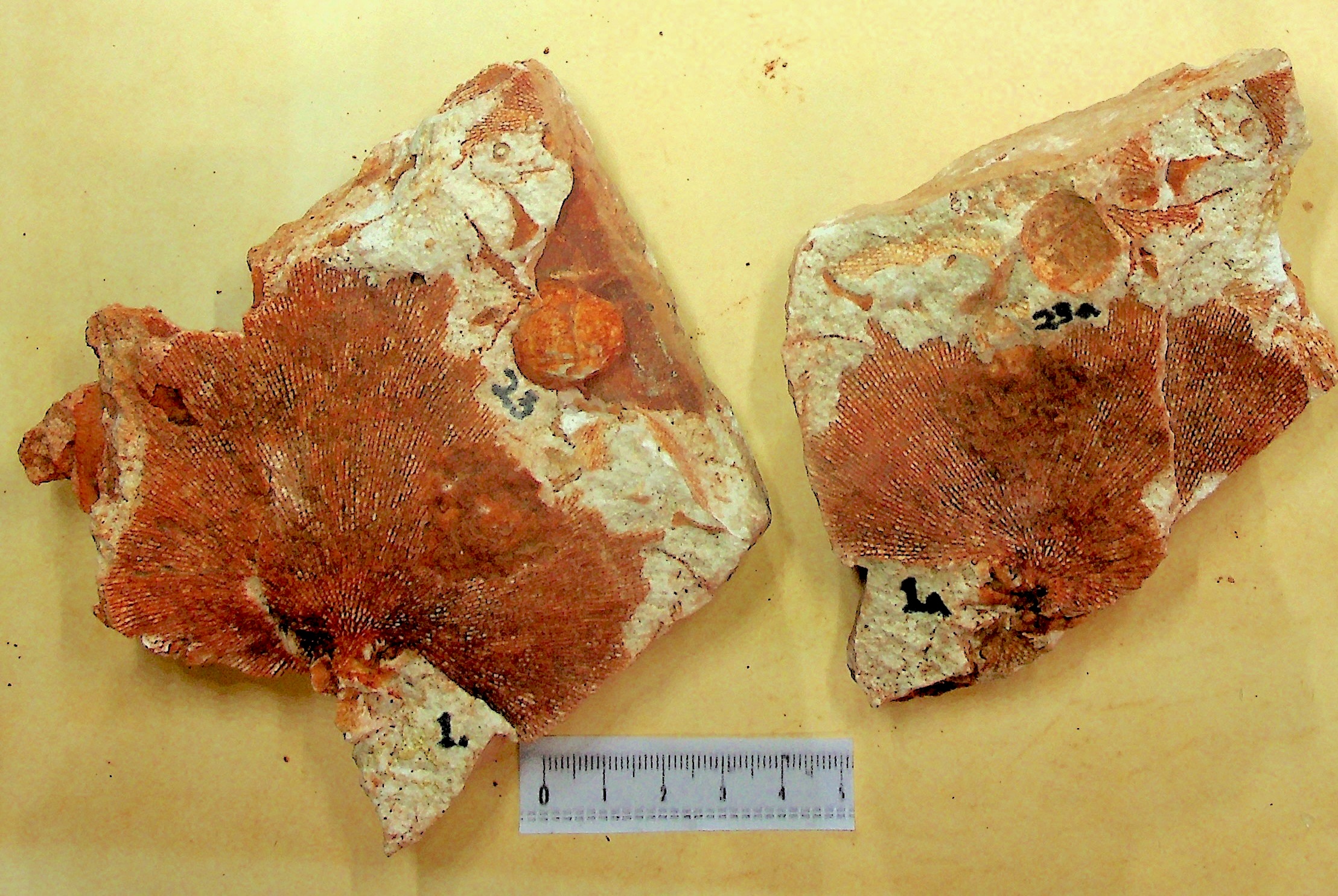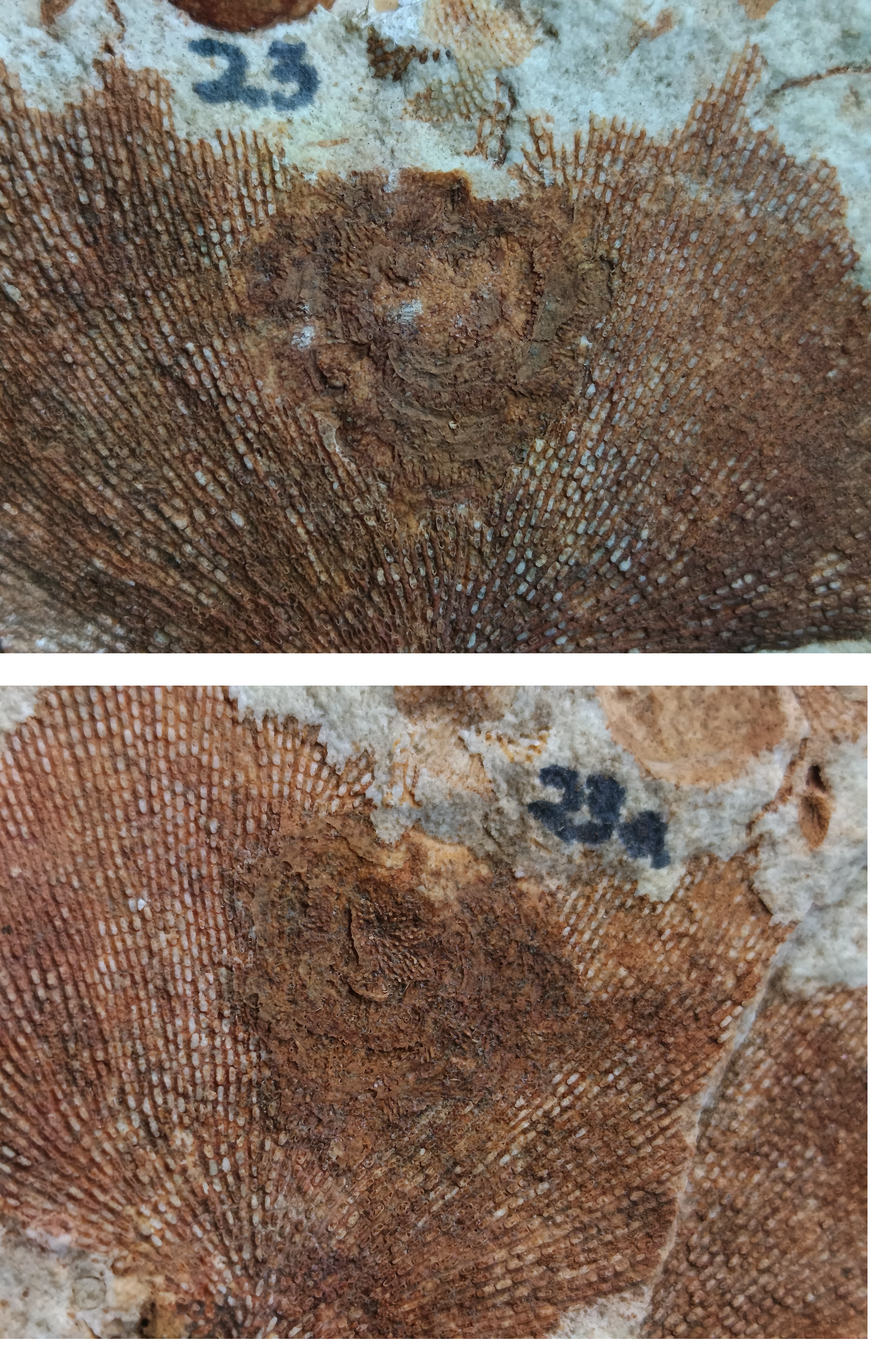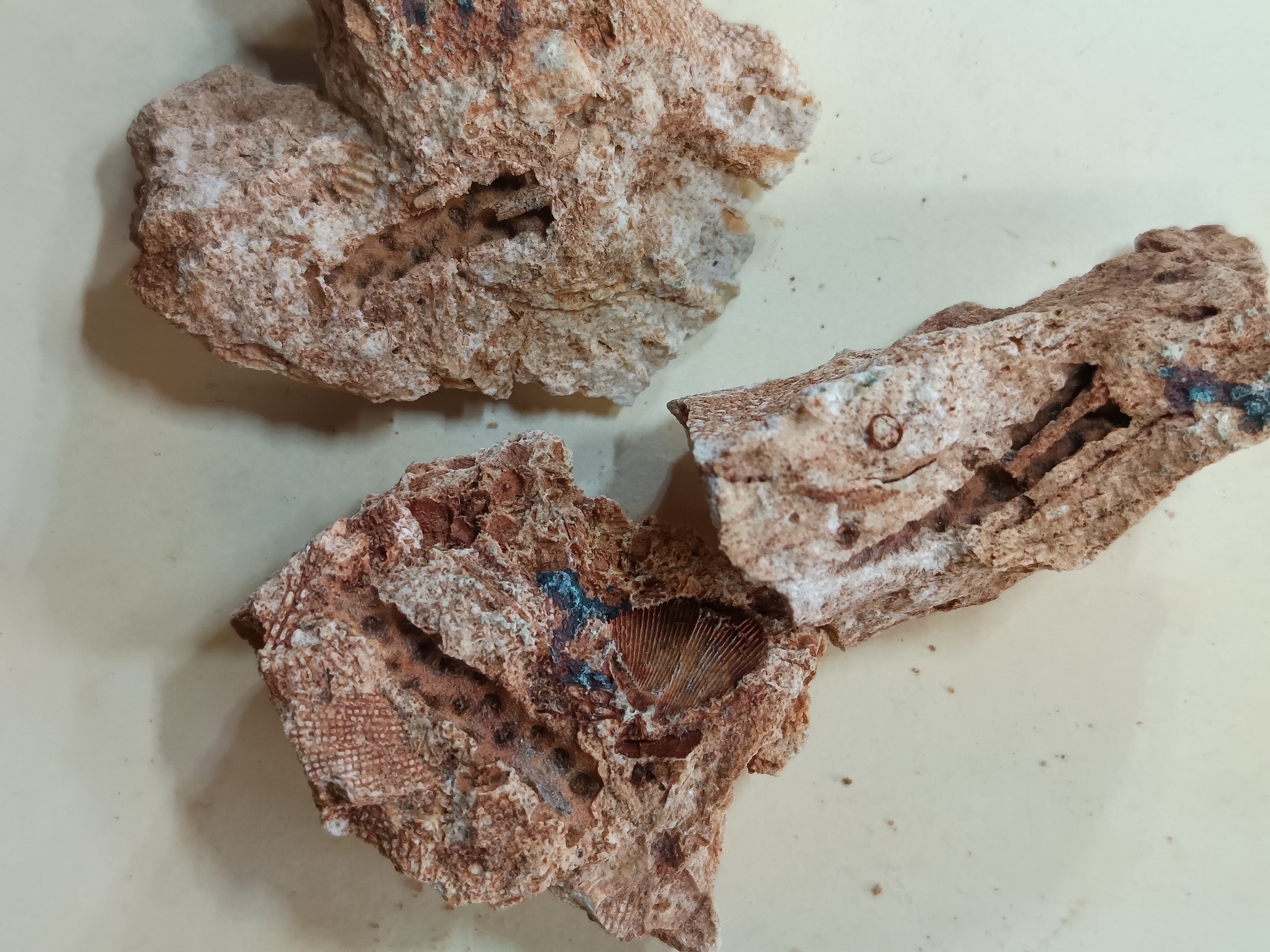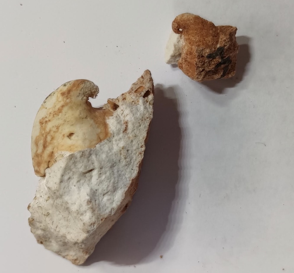 To provide further detail about some of the brachiopods, here are photos of six species with complete interior moulds (both pedicle valves and brachial valves) from other rocks along with an identification page. Also here is a photo of the lophophore brachidia from the inside of an unidentified brachiopod, something that is rarely preserved in the rocks that I have found.