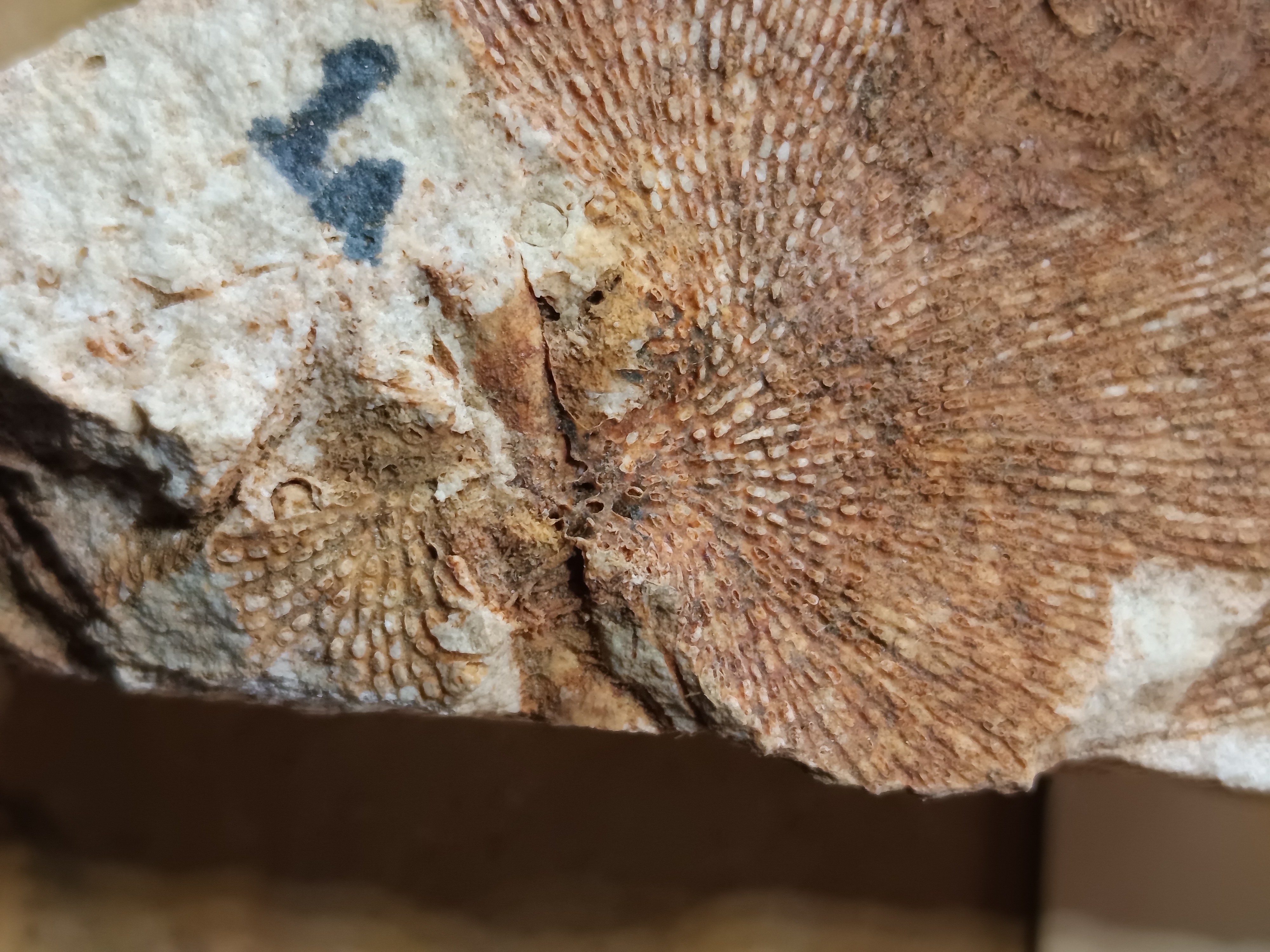 Echinoids. Photo of echinoid plates up close. No identification possible.