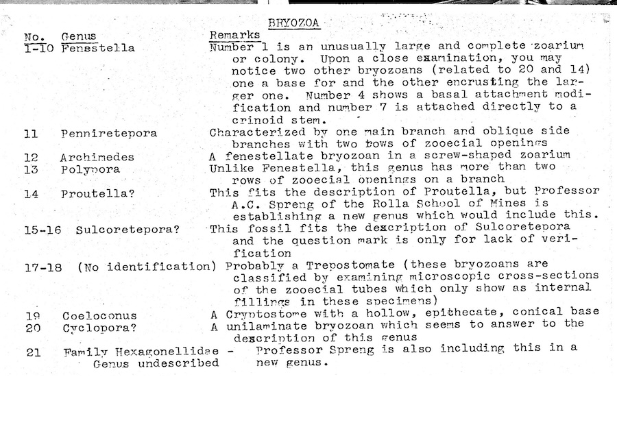 In the course of my work I had the opportunity to meet Professor A.C. Spring at the Rolla School of Mines in Missouri. With him, I described a new species of Setigerites brachiopods as shown here.