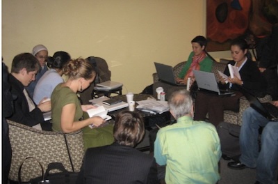 The Youth Report of 2006 was my last very successful project with Federico Mayor and his Fundación Cultura de Paz. Mayor was nominated by Spain to head up the initial high-level group to initiate their project with Turkey for intercultural dialogue between the Islamic and Christian countries. It was called the Alliance of Civilizations. Mayor came, along with his assistant Manuel Manonelles, to New York in June of 2006 for meetings of the Alliance at UN headquarters in New York, and I met with them at their hotel on Lexington Avenue. Mayor was disappointed by the bureaucratic nature of the Alliance initiative, and he asked me to make him a proposal for a Youth Corps modeled after the American Peace Corps under President Kennedy. I insisted instead that we should ask youth themselves what they wanted to do. "OK," he said, "give me a concrete proposal, but I must have it by September!" Time was short. We had only two months! For a week I consulted with the youth that had worked on the 2005 Midterm Report and got their agreement to work with me on this new report with very short notice. Within one week, on July 4, I sent Mayor a formal proposal with a 32,000 euro budget, and he gave me the OK to begin. UNOY (United Network of Young Peacebuilders), who had worked on the 2005 report, agreed to host an organizational meeting on short notice in another week at their offices in The Hague, Netherlands. It helped that their director at that time was Celina del Felice who had been a protege of Alicia Cabezudo in Argentina, and that I had a long history of collaboration with their founder Maria Kooijmans. Jo Lofgren and Gert Danielson, who had worked on the 2005 report (shown on the left in the bottom photo on page 35), agreed to come and conduct a training with me and follow-up with responsibility for Europe and Latin America, respectively. UNOY agreed to be responsible for Africa.