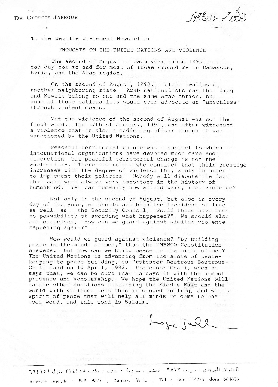 Letter from Dr. Georges Jabbour