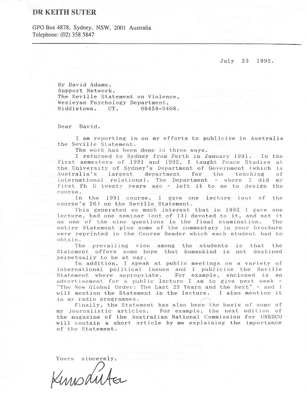 Letter from Dr. Keith Suter